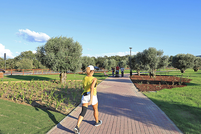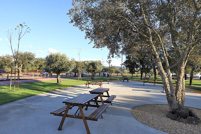 Com cerca de quatro hectares de zona verde, o parque possui uma vasta gama de equipamentos direccionados, sobretudo, para a comunidade juvenil, como um skate parque, um court de street basket e um slide. Percursos pedonais pavimentados e em terra compactada ondulantes, numa extensão com cerca de um quilómetro, zonas de estada, áreas ajardinadas com arbustos e árvores, incluindo oliveiras ancestrais, integram o cenário do ampliado parque azeitonense, ladeado a nascente pela Estrada Nacional 10.