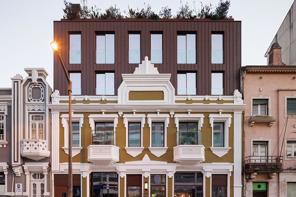 De acordo com a memória descritiva: Tendo em conta o sítio a desenvolver, a análise da envolvente é fundamental para uma boa relação do novo com o existente. Volumetricamente a envolvente é inconstante, as diversas altimetrias das construçõees marcam um desenho desordenado. De modo a garantir uma frente de rua harmoniosa, é proposto um volume único, que, perante a fachada existente, anda recuado, não tirando assim protagonismo dessa mesma fachada. O volume proposto assume uma altura de 4 pisos, garantindo que, no futuro, as construções vizinhas do prédio possam desenhar um skyline uniforme. Assim sendo, é garantida uma linguagem suave de transição de alturas para colmatar a diferença volumétrica existente nesta frente de rua.
