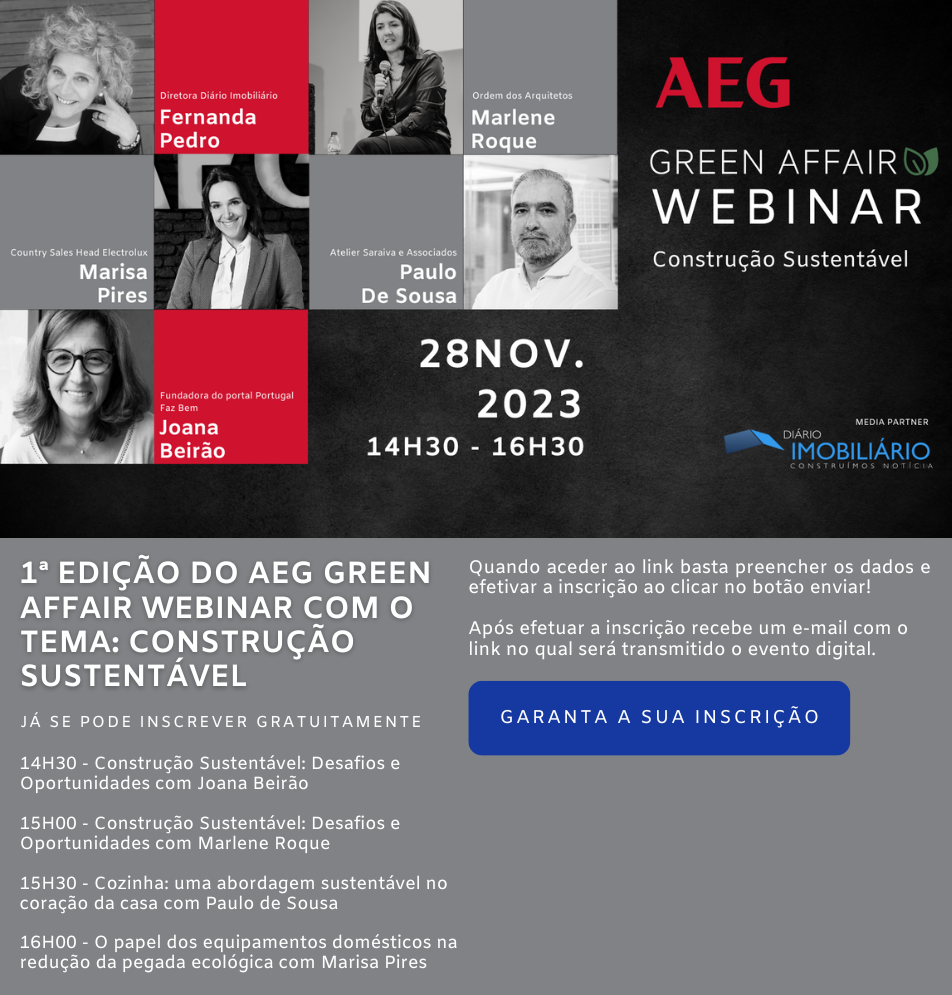 Preocupada com a sustentabilidade na construção em Portugal a AEG promove a 1ª edição do Green Affair Webinar com o objectivo de oferecer uma visão sobre um futuro mais sustentável para inspirar o sector a adotar medidas assentes na redução da pegada ecológica.