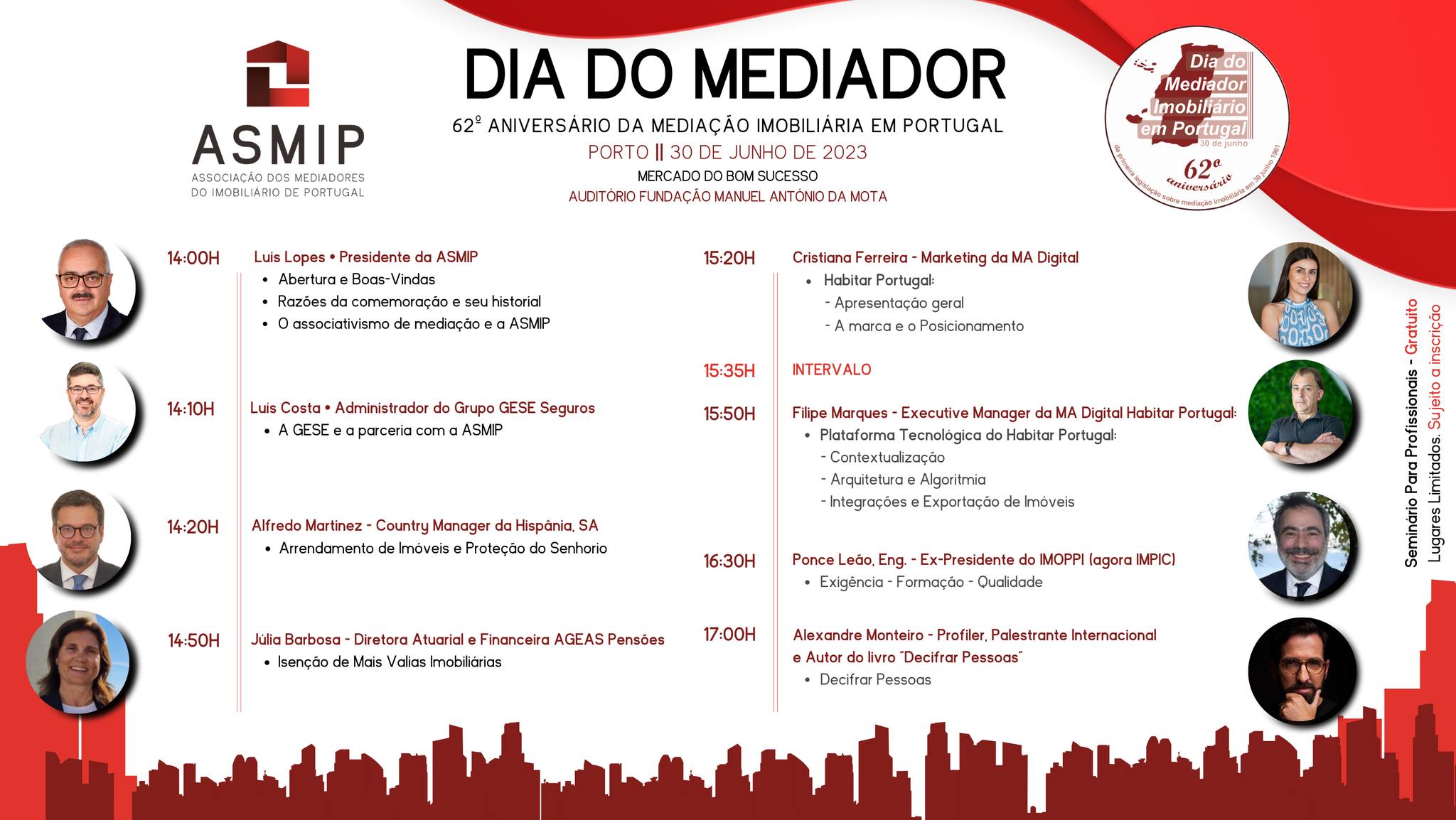 Para comemorar o 62º aniversário da mediação imobiliária, a Associação dos Mediadores do Imobiliário de Portugal - ASMIP promove o seminário Dia do Mediador, onde o destaque vai para a divulgação da plataforma Habitar Portugal.