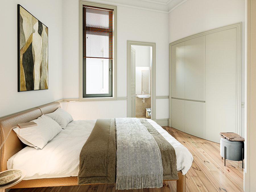 Com um minucioso e cuidado trabalho de restauro, o atelier Menos é Mais reconverteu o edifício originalmente denominado como “A Nacional” em 18 exclusivos apartamentos (T2+1, T2, T1 e T0) que aliam contemporaneidade e história, cumprindo os mais exigentes padrões de conforto e segurança.