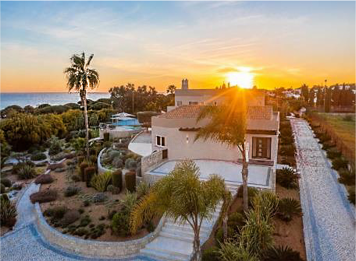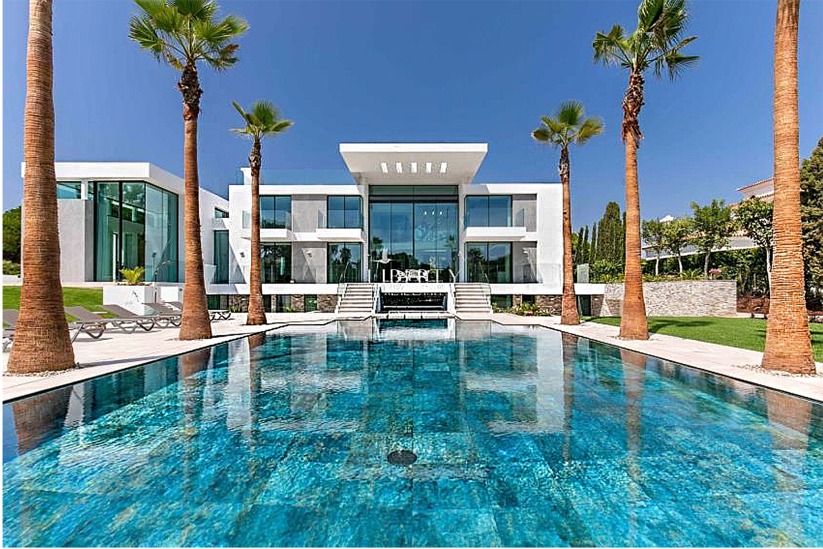 02. Vivenda moderna com vista mar na Quinta do Lago, Algarve: A vivenda apresenta uma exposição solar ímpar, permitindo desfrutar da área exterior que inclui uma piscina infinita e uma zona de lazer. Com sete quartos em suíte e oito casas de banho, destaca-se também pela presença de um spa, banho turco, sauna, piscina interior, espaço de ginásio, sala de cinema e uma área de refeições com acesso directo ao exterior, próximo ao churrasco, além de uma zona de jogos. Situada numa das localizações privilegiadas do Resort da Quinta do Lago. Preço: 14.500.000 euros.