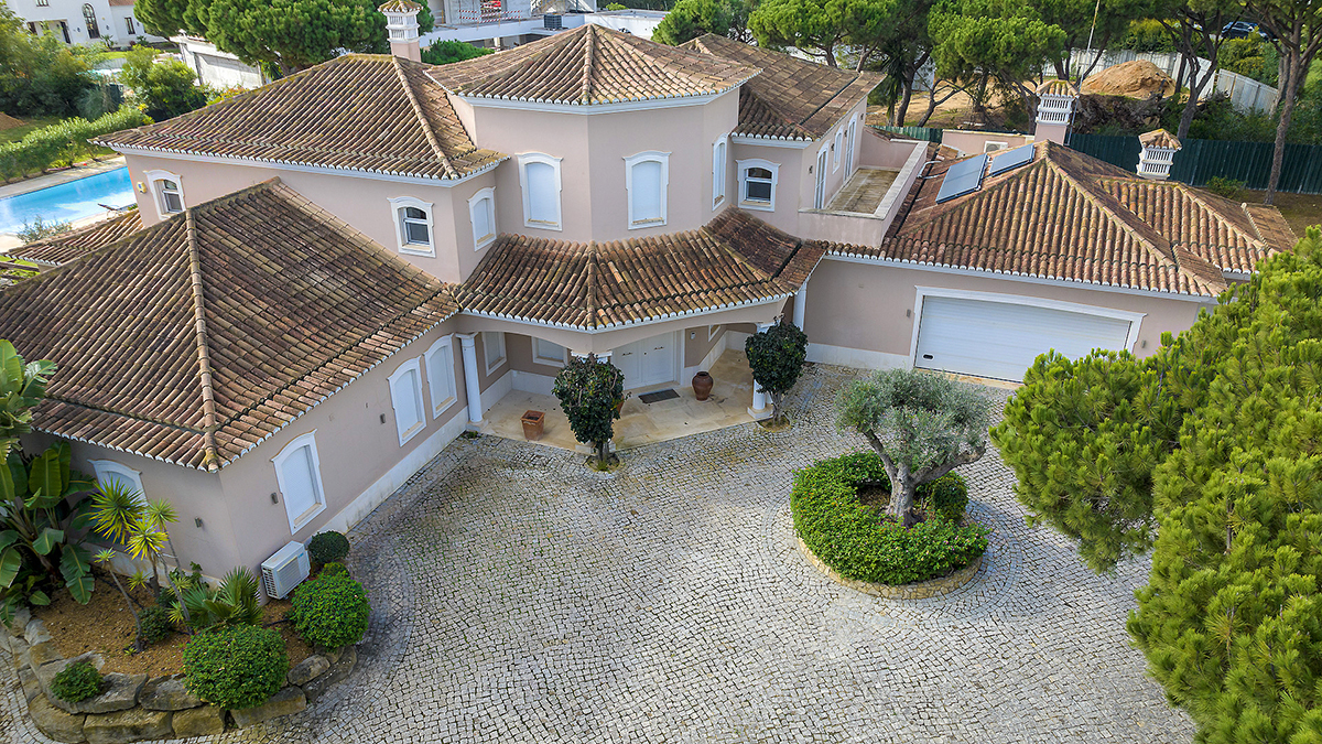 03. Moradia com piscina na Vale do Lobo, Algarve: Esta propriedade requintada dispõe de um total de 7 quartos e 10 casas de banho, abrangendo uma área de construção de 720 m², inserida num amplo terreno de 2.430 m². Concebida para proporcionar o máximo conforto e estilo, a magnífica moradia representa um verdadeiro oásis de tranquilidade, onde cada pormenor foi cuidadosamente pensado para oferecer uma experiência de vida inesquecível. A zona exterior conta com um jardim exuberantemente paisagístico e uma piscina deslumbrante. Preço: 12.500.000 euros.