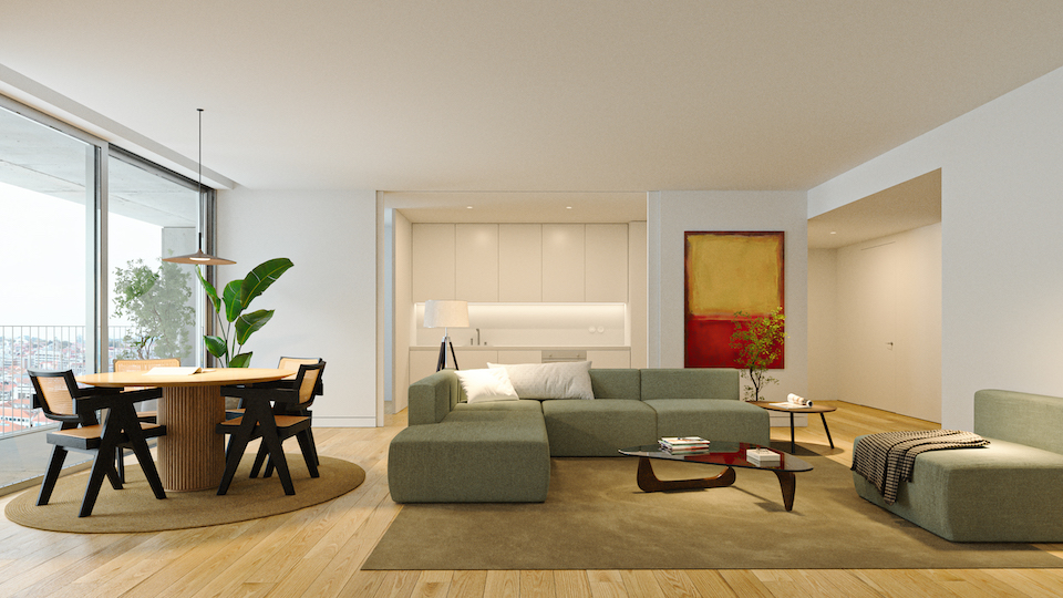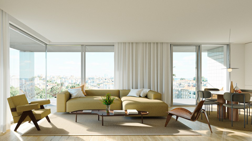 Os apartamentos, com áreas entre os 35m2 e os 144m2, foram concebidos pela OODA. Cada espaço privilegia a elegância, o conforto e a maximização das tipologias, tornando-as verdadeiramente funcionais. Nos pisos superiores, as varandas e os terraços do Fernão Magalhães 127, têm uma vista desafogada 360º: mar, rio, serra e cidade.