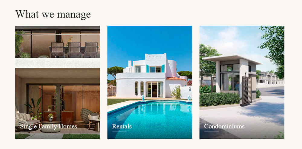 A Property Management Portugal, conta com uma equipa local dedicada, disponível 24 horas por dia, 7 dias por semana, para prestar um serviço 360º “chave na mão”, atendendo às necessidades dos proprietários e dos promotores, desde a pré-construção e desenvolvimento de conceitos até à definição final e criação de associações de moradores, regulamentos de condomínio, entre outros serviços. Para além da gestão imobiliária, disponibilizam-se todos os serviços complementares de que os proprietários possam precisar, como serviços de concierge ou chefs de luxo e ainda programas de manutenção preventiva para protecção de investimentos, por forma a proporcionar uma transição mais suave no processo de mudança e instalação em Portugal.