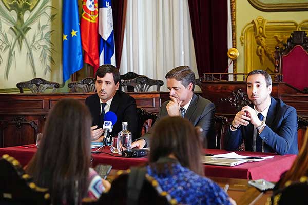 Ricardo Rio, presidente da Câmara Municipal de Braga (PSD/CDS), João Rodrigues, vereador com o pelouro da habitação, e Carlos Videira, administrador da Bragahabit apresentaram hoje o Programa Municipal de Arrendamento Acessível.