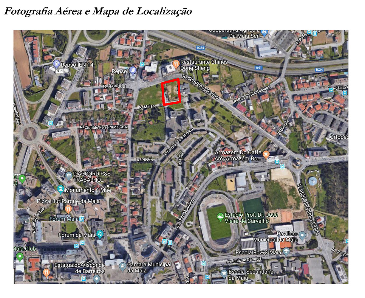 O lote, designado Lote A-1, destinado predominantemente ao uso habitacional, incluindo, ao nível do piso térreo, usos complementares de comércio e serviços e, eventualmente, estabelecimentos de restauração e bebidas, com a área de 1.706,3 m2, situa-se do lado nascente do novo arruamento previsto como prolongamento da Rua das Maias, com orientação norte-sul, que intersecta a Rua Altino Coelho.