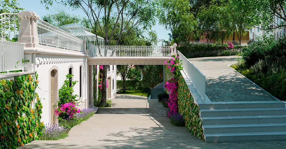 Relativamente ao jardim/logradouro, que é caracterizado pelo seu declive, a modelação proposta para os futuros edifícios pretende “colmatar a diferença de cotas, integrando os novos corpos na topografia do terreno”, sendo proposta uma área permeável de 1.357,08 m2, face à área permeável existente de 626,90 m2, contribuindo para a consolidação e ampliação da massa arbórea e arbustiva existente.