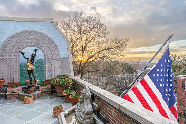 O complexo opulento inclui 13 quartos, 13 casas-de-banho e 5 lavabos nas três casas. A antiga casa dos Kennedy foi meticulosamente mantida, com lareiras originais, um impressionante hall de entrada e uma biblioteca com painéis de madeira. As reformas criaram uma casa vitrine com design, acessórios e acabamentos da mais alta qualidade. Uma elegante sala de jantar com teto folheado a ouro, uma academia, um escritório executivo e uma cozinha espaçosa e moderna são apenas algumas das comodidades da casa. O segundo andar é dedicado a uma espaçosa suíte principal com piso em parquet, banheira com qualidade de spa e varanda privativa com vista para o jardim. Quatro quartos adicionais possuem suítes e um deck de observação elevado oferece vistas estelares da propriedade e da cidade ao redor, incluindo o Monumento a Washington.