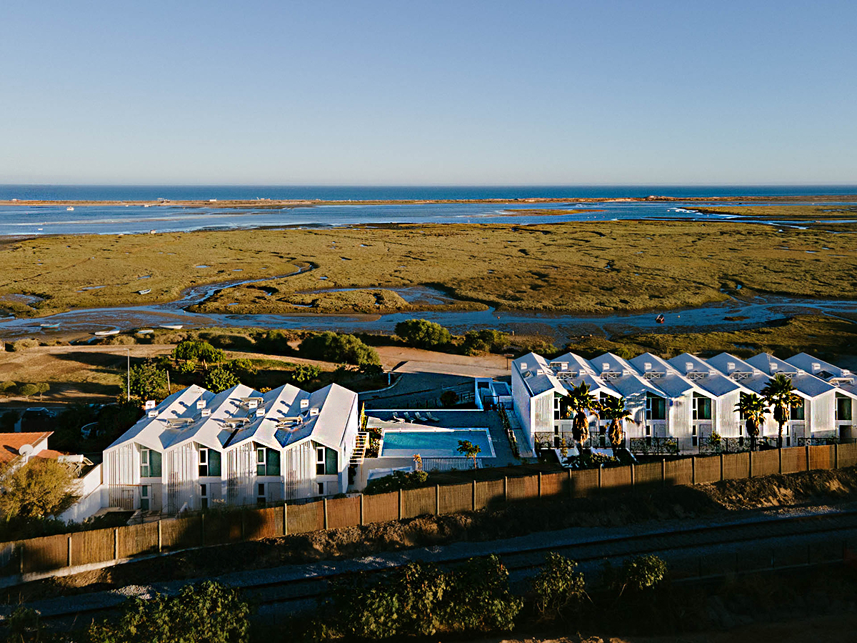 Entre a linha costeira e a localidade da Fuseta, o projecto residencial Casas de Sal está concluído e pronto a habitar. Compreende três lotes dos quais dois são residenciais. O terceiro lote, reservado às áreas comuns, acomoda diversos serviços e uma piscina sobranceira à Ria Formosa.
