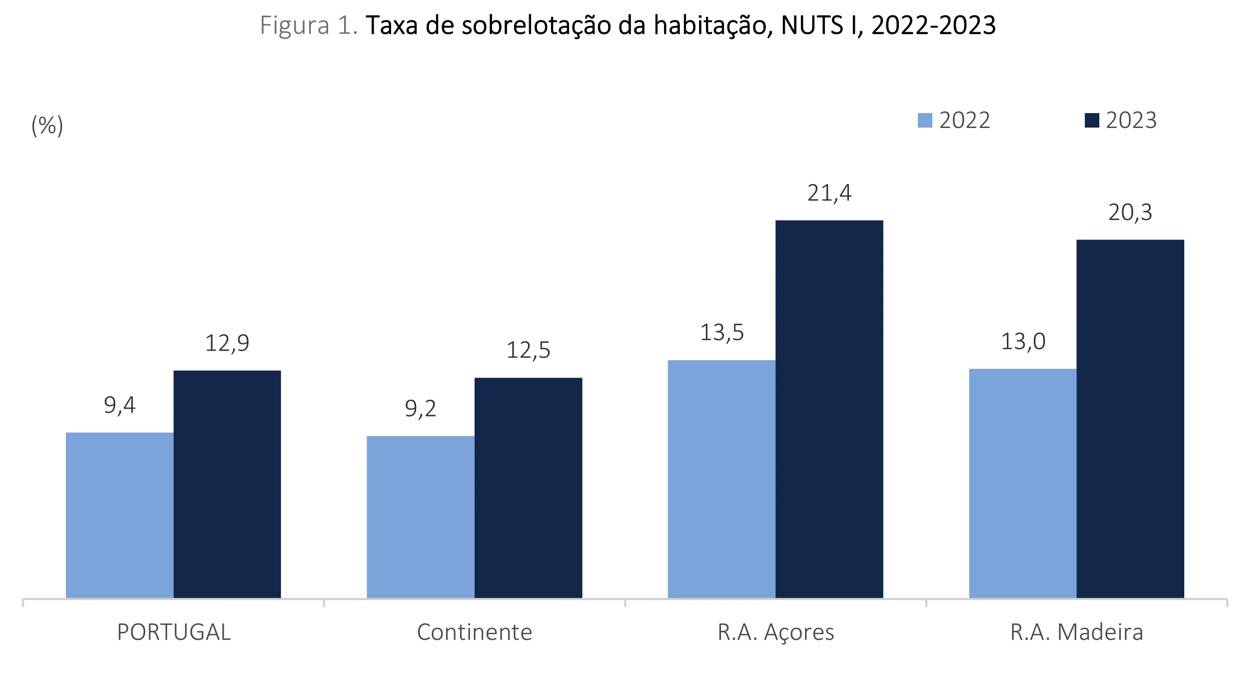 Como referido, os resultados obtidos confirmam a degradação das condições de habitação, com a proporção de pessoas a viver em alojamentos em que o número de divisões habitáveis era insuficiente para o número e o perfil demográfico dos membros do agregado a aumentar para 12,9%, mais 3,5 p.p. do que no ano anterior (9,4%), e a proporção dos residentes em condições severas de privação habitacional a aumentar para 6,0%, mais 2,1 p.p. do que em 2020 (3,9%).