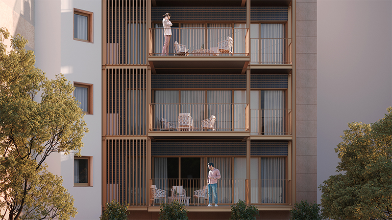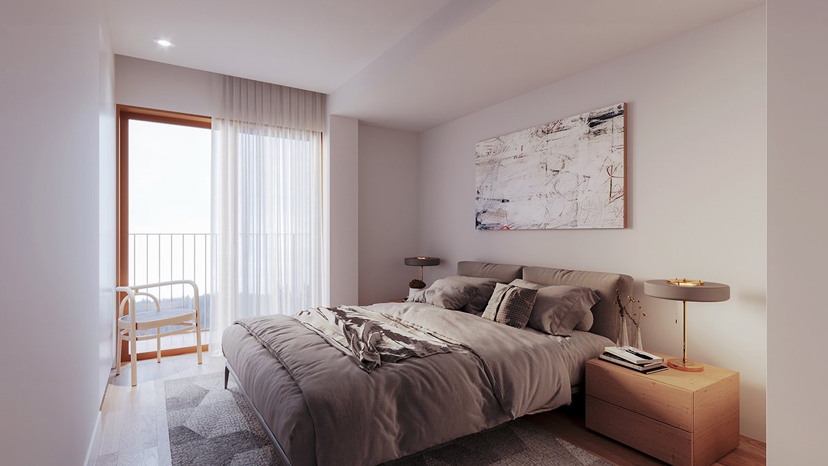 Os apartamentos, que vão de T0 a T3, contam com áreas entre 52 e 146 m2 - bem distribuídas, incluindo varandas e/ou terraços. A luz natural é outra das características destacáveis, providenciada por grandes janelas que oferecem panorâmicas da cidade.