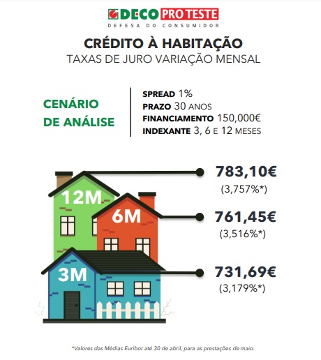 Veja os valores das prestações para o mês de Maio, com as médias da euribor até 30 de Abril no seu crédito à habitação, de acordo com a Deco Proteste.