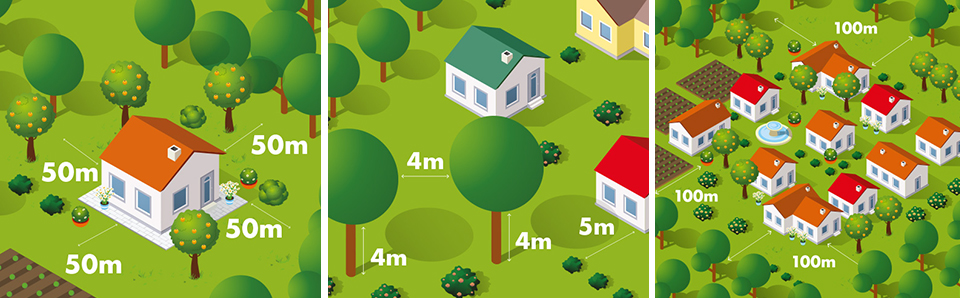 1. Corte os ramos das árvores até quatro metros acima do solo, mantendo-as afastadas pelo menos 4 metros uma das outras (10 metros no caso dos pinheiros e eucaliptos)