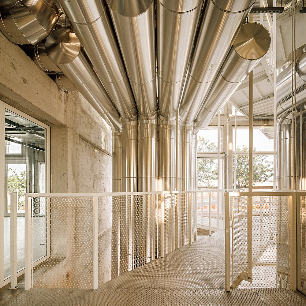 De acordo com os princípios em que assenta o projecto, “todas as intervenções importantes são representadas como linhas de aço branco. Elas adicionam ou corrigem o que for necessário, ao mesmo tempo, em que deixam o corpo histórico do edifício legível e intacto. Além das passarelas, cruzes de São André foram adicionadas para tornar a construção resistente a terremotos, elementos de fachada de tijolo foram abertos com vidros de moldura branca, para trazer luz ou permitir a circulação, e os pisos do mezanino foram estendidos para aproveitar o pé direito alto com mais eficiência. As instalações técnicas necessárias são tratadas como veias, ocupando seu lugar no corpo do volume. Elas são visíveis como transformações tecnológicas, adaptando a funcionalidade de uma antiga instalação de produção de alimentos para usos contemporâneos de escritório e eventos.