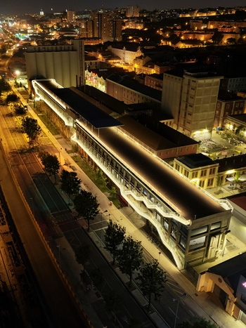Um elemento estruturante e que marca a visão do renovado edifício é todo conjunto de escadas e passereles que foi anexada ao antigo imóvel e que fazem com que toda a circulação seja feita externamente. A iluminação exterior, com diferentes colorações fazem sobressair toda essa estrutura metálica que foi justaposta ao histórico edificado.