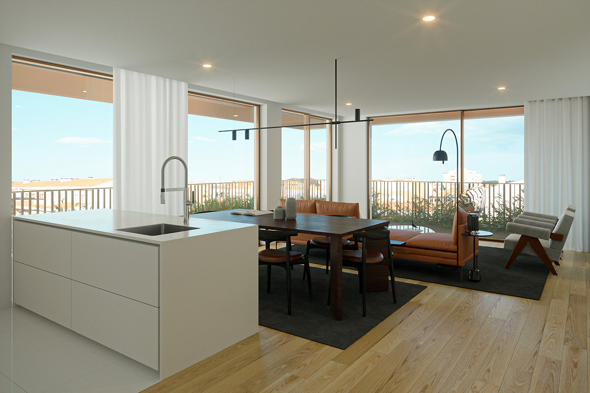 O edifício de 3 pisos, disponibiliza apartamentos com áreas interiores entre os 51 e os 177 m2 e áreas exteriores entre os 5 e os 112 m2. Destaque para os dois apartamentos T3 da cobertura, que gozam de amplas vistas, áereas de lazer exteriores, mas que, entretanto, já foram vendidos.
