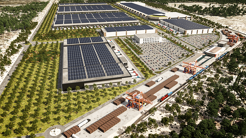 Com estação ferroviária privada, o GLPEA funcionará como uma plataforma intermodal, uma porta de entrada para a Europa e para o Atlântico.