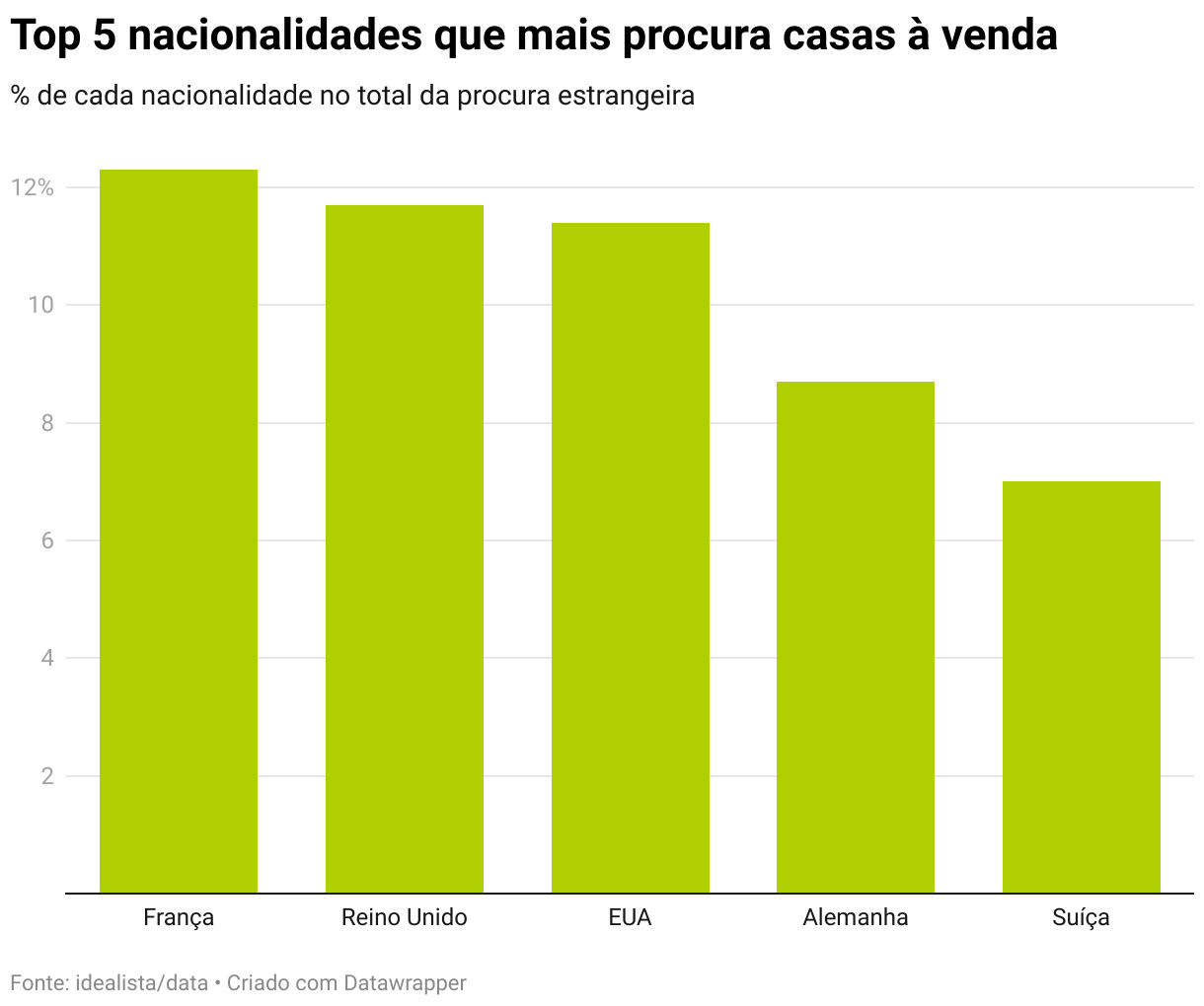 Já no último trimestre de 2023, depois do fim dos vistos gold ser aprovado, verificou-se que o interesse dos norte-americanos por comprar casa no país arrefeceu, passando de 12,4% no Verão para 11,4% no final do ano, deixando assim o 1.º lugar. E o interesse dos brasileiros também caiu neste período, de tal forma que saíram deste top5 depois de uma presença assídua desde 2019.