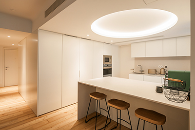 Já no Bonjardim, localizado no centro da cidade junto à Avenida dos Aliados, o desafio para Filipa Fleming foi criar o projecto de decoração de interiores de um espaçoso apartamento-modelo de tipologia T4. Inspirado pelos tons da fachada do edifício, este projecto assume um ambiente moderno, descontraído e de inspiração cosmopolita.