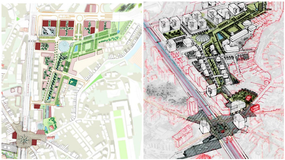 Na zona que vai praticamente desde Santo Ovídio até à rotunda Afonso de Albuquerque, actualmente um descampado à superfície da futura estação de comboios, propõe-se um parque urbano e um jardim cívico com uma linha de água, incluindo a instalação de árvores e vegetação.