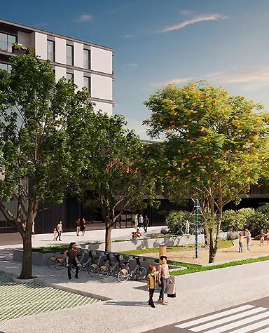 Com vista privilegiada para o Estuário do Tejo, o projecto destaca-se pelas zonas verdes e pela promoção da biodiversidade, com 1.800 m2 de jardins e coberturas vegetalizadas, 4.650 m2 de zonas permeáveis e pela aposta em energias renováveis, com a instalação de mais de 900 painéis fotovoltaicos. Para reforçar a ligação à cidade e promover a mobilidade suave e um estilo de vida mais saudável e sustentável, será feita a integração com a rede de ciclovias da cidade.