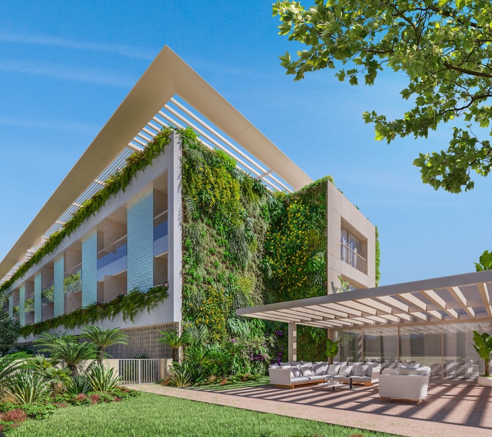 Entre as características de sustentabilidade deste empreendimento contam-se a utilização de painéis fotovoltaicos para iluminação das zonas comuns, alimentar o sistema de rega e a estação de tratamento de águas existente, a disponibilidade alargada de carregamento elétrico para cada uma das frações, a criação de jardins verticais que refletem a ligação com a natureza que o rodeia e permitem uma melhor eficiência térmica. Foi ainda instalado um sofisticado sistema de rega gota-a-gota o qual, reforçando o compromisso com a sustentabilidade e circularidade, recorre à água da piscina, que é processada numa estação de tratamento, sendo ainda reutilizada para a lavagem de veículos na garagem e rega do jardim. A piscina, de 25 metros, permite criar, em conjunto com o jardim envolvente, promover um espaço único de vida em comunidade.