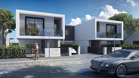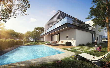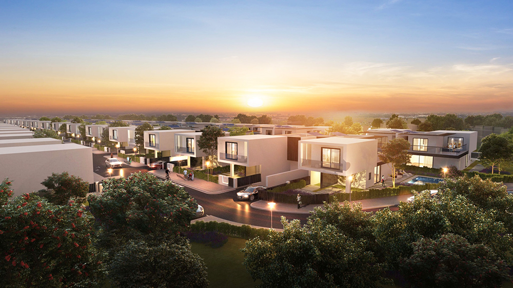 Com piscina e jardim privado, cada smart-villa conta com um sistema inovador de painéis que captam e armazenam energia solar.