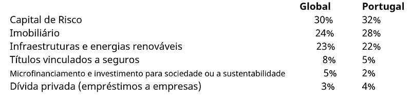 Além disso, quase dois terços dos investidores (63% a nível mundial e 65% em Portugal) salientaram também que a natureza ilíquida destes ativos e o período de detenção mais longo exigido constituíam um obstáculo ao investimento.No entanto, em média, os investidores admitiram que considerariam a possibilidade de alocar 16,4% (12% em Portugal) dos seus fundos em ativos privados. Para os investidores mais "experientes", este valor subiu para 23,1% (18,2% em Portugal).Especificamente, cerca de um terço (30% a nível mundial e 32% em Portugal) sente-se mais atraído pelo investimento em ações privadas. Mais uma vez, no caso dos investidores "especializados", esta percentagem aumentou consideravelmente, com 46% e 48%, a nível mundial e em Portugal, a afirmarem que desejam investir em capitais não abertos à subscrição pública.