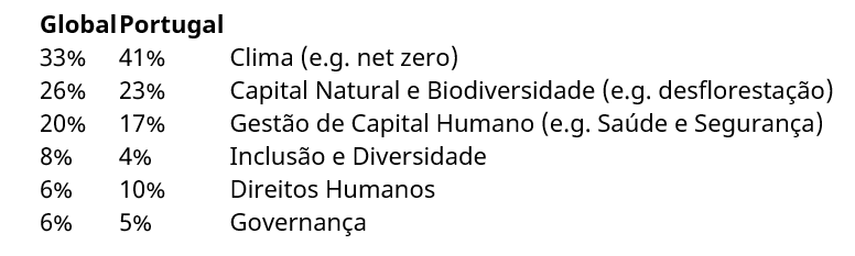 Especificamente, os principais tópicos em que os investidores querem ver um envolvimento activo são os relacionados com o clima, o capital natural e a gestão dos trabalhadores.