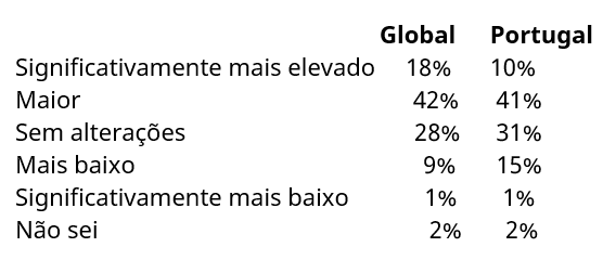 Apesar de reconhecerem que entraram numa nova era de políticas e comportamentos de mercado, a grande maioria dos investidores mantém-se otimista quando questionados sobre as suas expectativas de retorno: globalmente, quase 90% espera que os retornos sejam idênticos ou superiores aos do ano passado, um pouco mais do que os europeus (86%) e os portugueses (82%). Entre os portugueses, cerca de metade espera obter retornos superiores ou significativamente superiores nos próximos 12 meses, 9 p.p. abaixo da marca global.