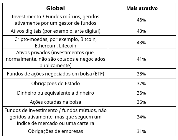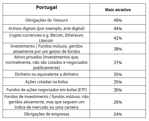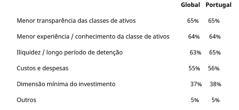 No entanto, quase dois terços dos investidores (64% a nível global e em Portugal) assumem que ainda têm um conhecimento limitado desta classe de activos, o que indica que é necessária uma maior educação para apoiar o crescimento contínuo destes investimentos.