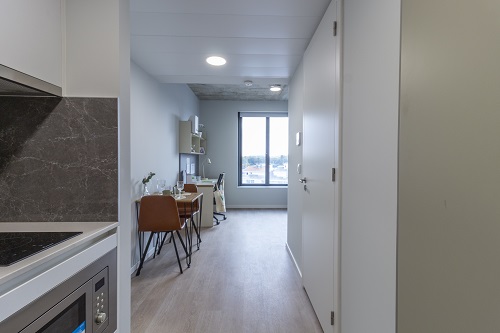 - Premium Studios: apartamento com um quarto, equipado com uma cama queen size, secretária de trabalho, cadeira ergonómica e armário de arrumação. Nesta tipologia, a cozinha, que é numa divisão à parte, está equipada com micro-ondas, placa e exaustor e mini frigorífico.