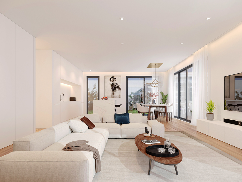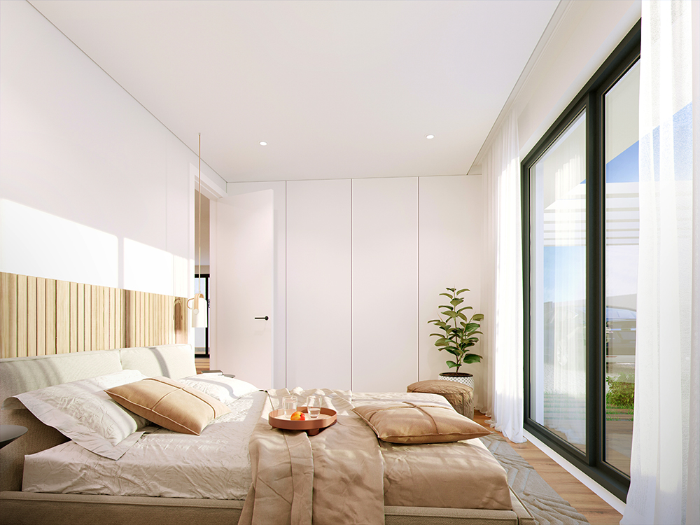 As moradias V3, com áreas a partir dos 115m2 e lotes de terreno a partir dos 439m2, possuem um amplo jardim privado com piscina, uma espaçosa área de estar exterior e estacionamento preparado para veículos eléctricos.