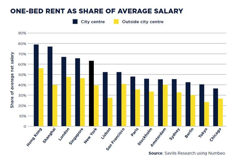 A Savills Research mostra que, entre 2019 e 2022, as rendas dos escritórios prime aumentaram na maioria dos principais centros urbanos globais, apesar da perturbação causada pela pandemia. As pequenas e médias empresas (PMEs) estão, novamente, a ser as mais atingidas por esta tendência de subida de valores. Em muitas cidades, o aumento das rendas tem-se propagado para fora dos históricos distritos centrais de negócios, pelo que se verifica uma deslocação das PMEs para zonas mais remotas e edifícios menos atractivos.