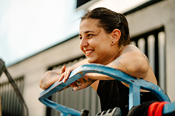 O novo mural da artista belga na fachada da residência de estudantes Livensa Living Lisboa Cidade representa duas silhuetas humanas integradas na paisagem, a partir de dois elementos - a água e a pedra - que pretendem celebrar a conexão das regiões através da arte e da cultura. A água representa os intercâmbios entre as regiões de Valónia-Bruxelas e Lisboa, enquanto a pedra simboliza a força e a estabilidade própria de cada cultura.