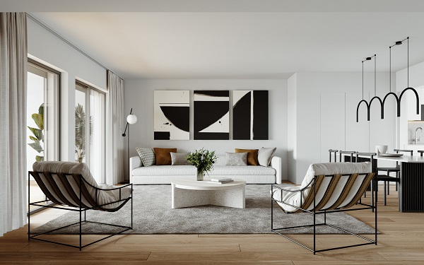 De T1 a T5, apresentam áreas compreendidas entre os 49 e os 149 m2 e varandas e terraços com áreas até aos 137 m2. Os 17 edifícios residenciais têm em comum uma vasta zona de lazer privativa com 4 110 m2. Neste espaço exterior, encontram-se espaços relvados e uma piscinas. Além disso, o projecto oferece um lobby decorado, ginásio totalmente equipado e sala multiusos. O estacionamento privativo é subterrâneo e inclui pré-instalação para carregamento de veículos eléctricos, lugares de parqueamento para pessoas de mobilidade reduzida e para bicicletas.