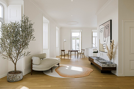 O empreendimento - que está a ser comercializado pela Athena Advisers Portugal e pela JLL - é composto por nove apartamentos de design contemporâneo, distribuídos por três pisos, e ainda um jardim ao nível do primeiro piso. Com tipologias entre o T1 e o T3 e áreas que vão dos 83 m² aos 189 m², os apartamentos irão conservar a altura dos pés direitos com mais de três metros, replicando nos tetos os ornamentos da época, bem como as amplas janelas que proporcionam vistas sobre o rio no último piso. Os preços de venda oscilam entre 680.000 e os 1,5 milhões de euros.