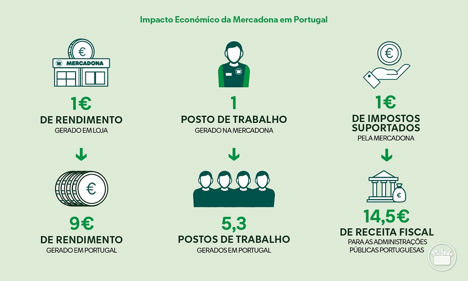 Os resultados do relatório demonstram a importância da Mercadona como impulsionadora de crescimento económico nacional, contribuindo com nove euros para economia portuguesa por cada euro de receitas geradas nas suas lojas (salários, rendas e lucros). Da mesma forma, por cada posto de trabalho criado na Mercadona, são criados 5,3 empregos no país. Em termos de impacto fiscal, cada euro efetivamente suportado pela Mercadona traduz-se em 14,5 euros de receita fiscal para os diferentes níveis das administrações públicas portuguesas.