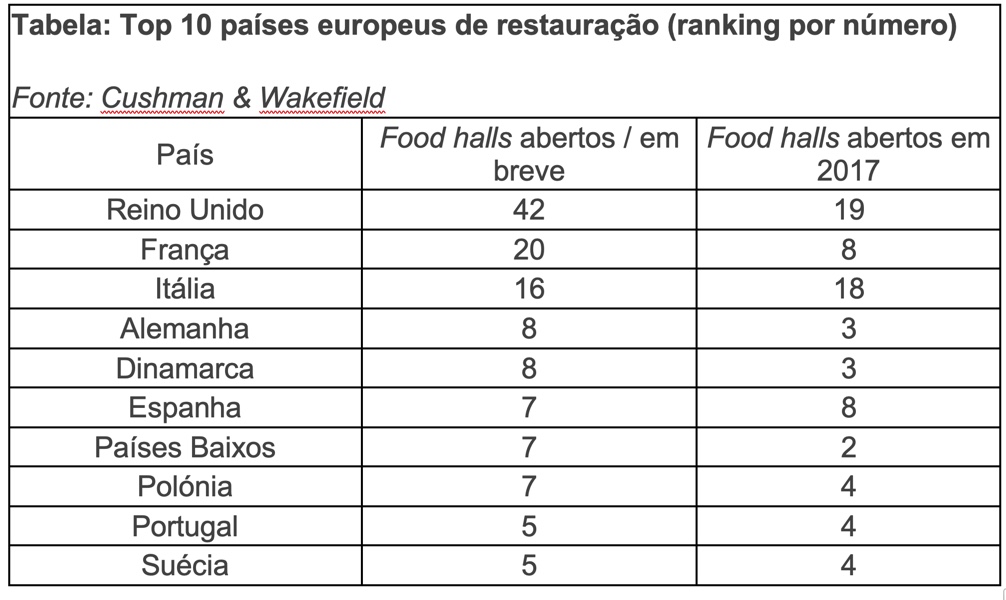O número de mercados de restauração (food halls, no seu termo em inglês) na Europa aumentou quase 50% nos últimos sete anos, estando atualmente abertos 133 espaços deste género e outros nove em breve, de acordo com o último relatório da Cushman & Wakefield (C&W) sobre os Food Halls na Europa.