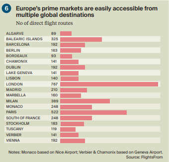Segundo o European Lifestyle Report, a Europa continua a ter um bom valor de preço de m2 quando comparado com outros mercados mundiais.