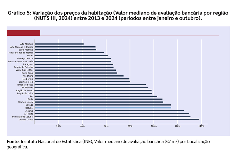 Acrescentando entre as suas conclusões: “O aumento de preços na habitação tem um claro recorte geográfico. As duas principais Áreas Metropolitanas, em especial a de Lisboa, e o Algarve, são as regiões onde os preços têm aumentado de forma mais significativa. Essas diferenças geográficas ajudam-nos a compreender, no próximo relatório, quais os factores subjacentes a este processo”.