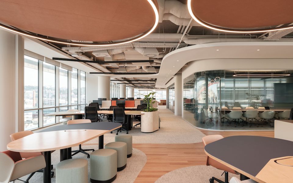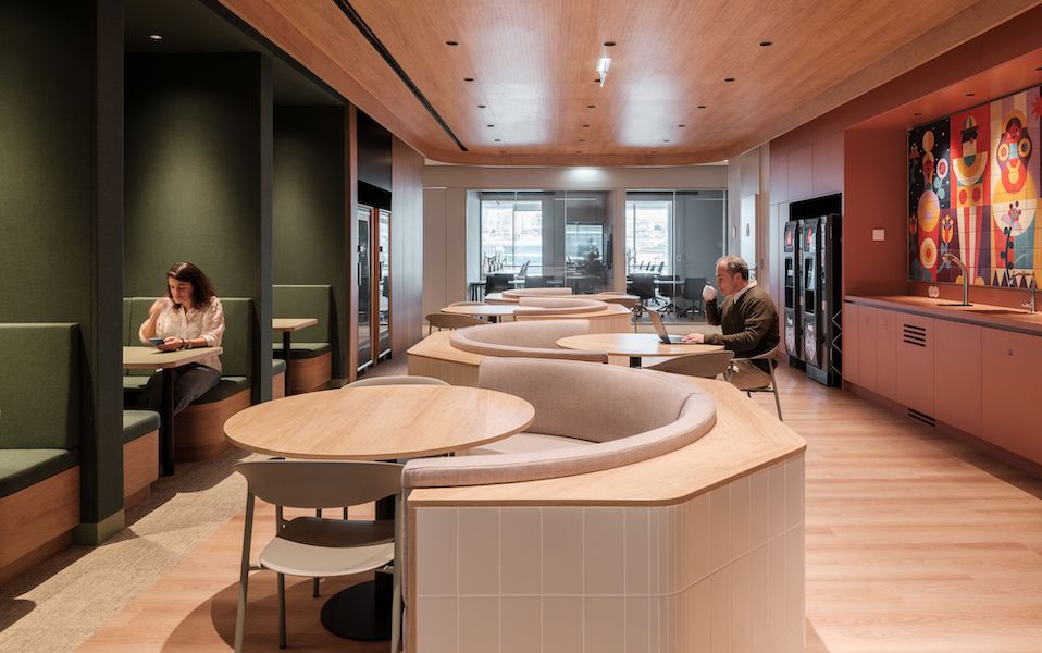 A materialidade, os tectos, as cores e as formas orgânicas foram cuidadosamente pensados para gerar um espaço de trabalho atractivo e estimulante.