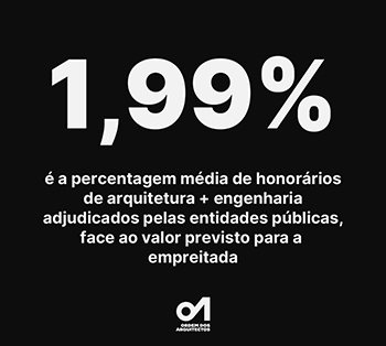 Outro dado que veio a público este ano e que a Ordem dos Arquitectos considera preocupante relaciona-se com os honorários da encomenda pública pagos em Portugal: “Em média, o que o Estado encomenda aos arquitectos e engenheiros vale só 1,99% do valor total da empreitada”.