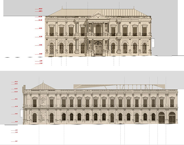 Apesar da negligência ao longo do anos, o palácio conserva ainda importantes restos originais de decoração em gesso, bem como policromia nas fachadas neoclássicas: ocre, branco, cinzento e damasco, escondidos sob revestimentos de pintura posteriores. As obras incluem a consolidação e reparação estrutural do edifício, a recuperação dos seus interiores e a restauração do seu património artístico, obras em que participa um grande grupo de profissionais e restauradores especializados da Kalam, com o objectivo de adaptar o edifício à sua nova utilização e devolver este icónico palácio ao público, à cidade de Santiago e ao Mundo.