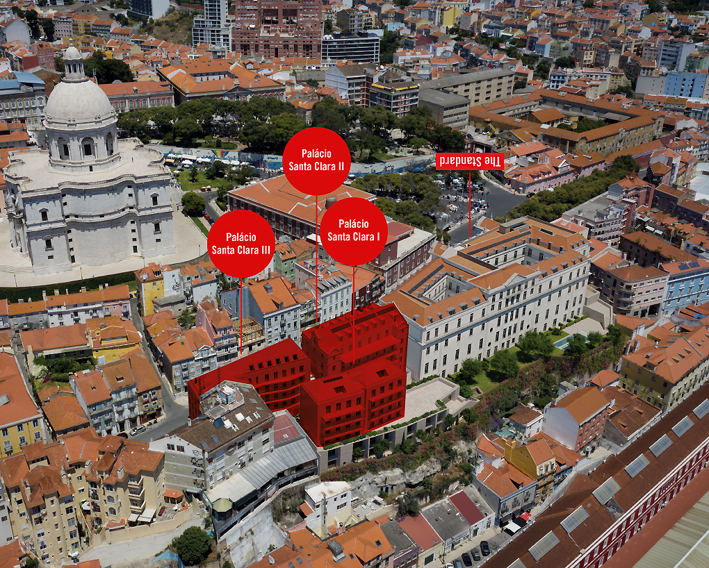 O Palácio Santa Clara eleva-se sobre Alfama e oferece algumas das melhores vistas de rio da cidade de Lisboa. Os apartamentos residenciais contam com tipologias T1 a T4 duplex, com áreas que variam entre os 56 e os 326m2. As residências do Palácio Santa Clara estão distribuídas por três edifícios localizados ao lado do futuro hotel "The Standard Lisboa", que tem data prevista de conclusão em 2026.