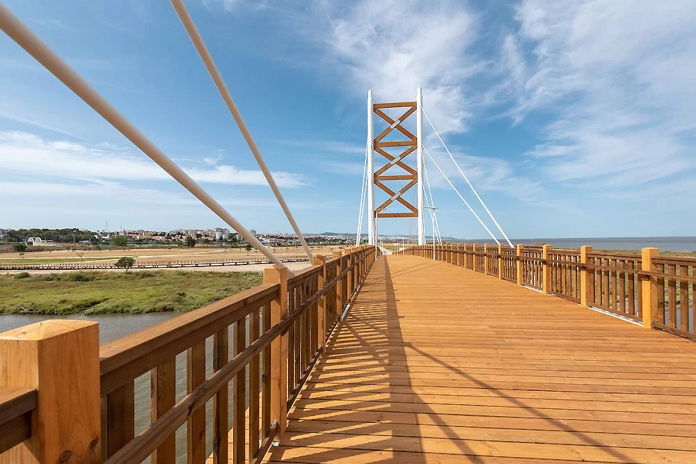 A ponte ciclopedonal sobre o Rio Trancão, outrora um dos afluentes do Tejo mais poluídos, marca a ligação entre os concelhos de Lisboa e Loures foi ontem inaugurada e está concluída. Feita maioritariamente de madeira e aço, suspensa em quatro pilares fundados nas margens do rio, destina-se a peões e ciclistas.