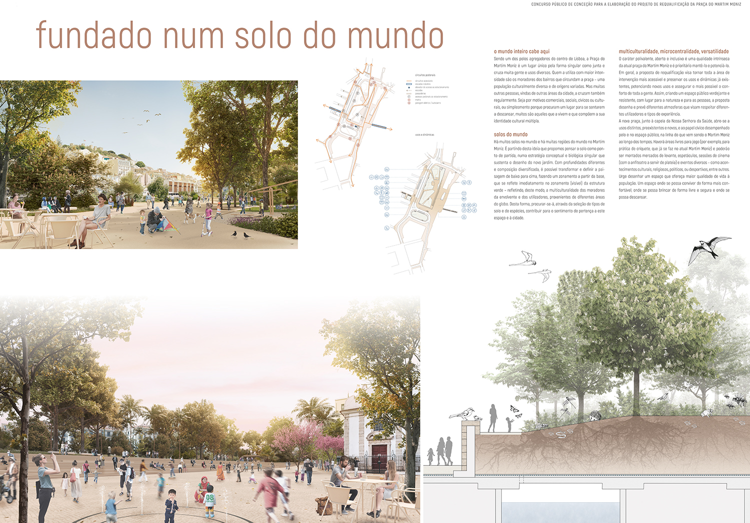 No âmbito do concurso público internacional para a requalificação da Praça do Martim Moniz, que decorreu de Março a Junho de 2023 e que recebeu 21 trabalhos, o vencedor escolhido pelo júri foi o projecto de Filipa Cardoso de Menezes & Catarina Assis Pacheco – Arquitectura Paisagista. No próximo mês de Março, há uma exposição na praça com todos os trabalhos candidatos.