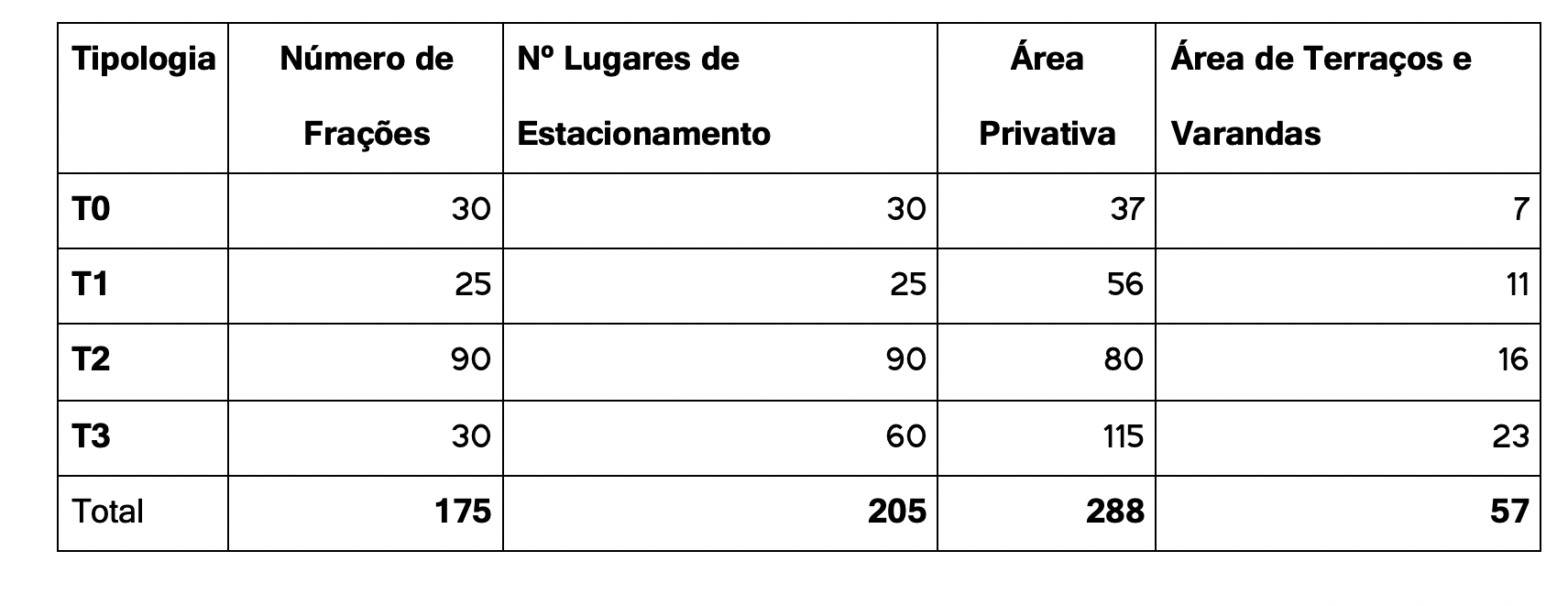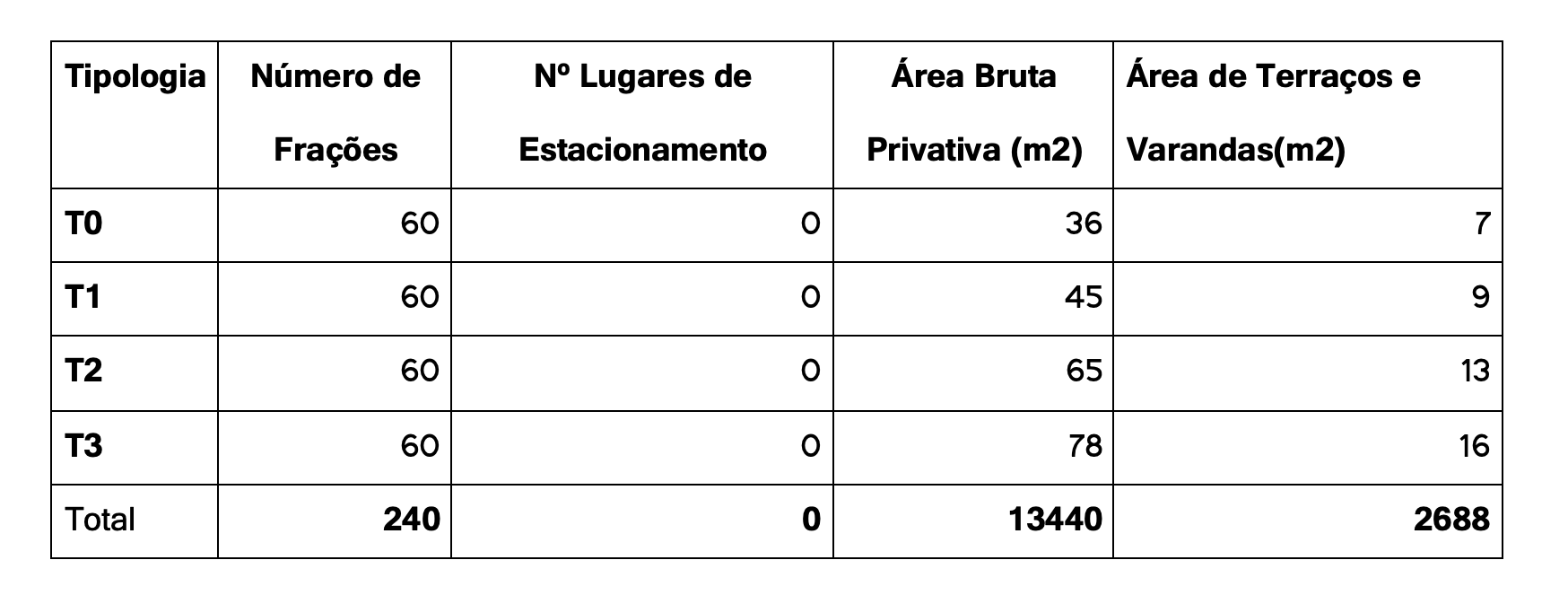 De acordo com as regras que determinam as áreas mínimas por Tipologia, não estou a apresentar dimensões de apartamentos que se enquadrem na regulamentação.