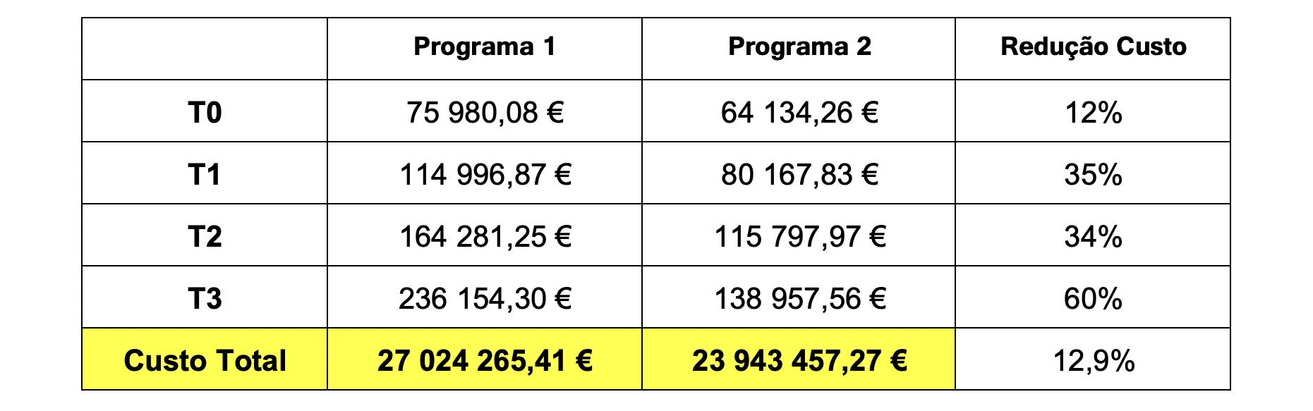 1) Reduzir o custo de produção em cerca de 3 080 808,14 € ou seja, cerca de 12,9%.